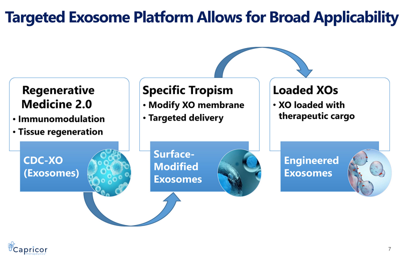 Targeted Exosome Platform Allows for Broad Applicability Regenerative Medicine 2.0 • Immunomodulation • Tissue regeneration CDC - XO (Exosomes) Specific Tropism • Modify XO membrane • Targeted delivery Surface - Modified Exosomes Loaded XOs • XO loaded with therapeutic cargo Engineered Exosomes 7