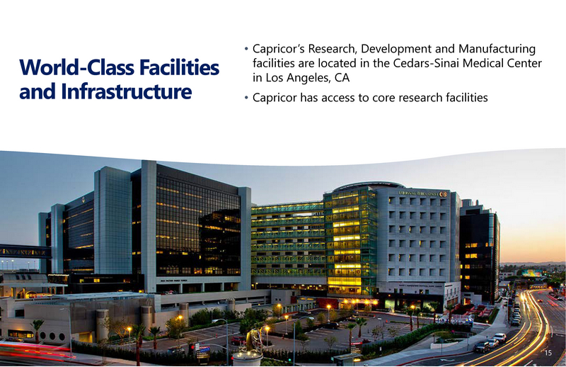World - Class Facilities and Infrastructure • Capricor’s Research, Development and Manufacturing facilities are located in the Cedars - Sinai Medical Center in Los Angeles, CA • Capricor has access to core research facilities 15