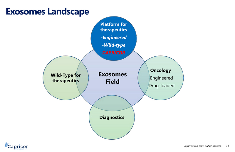 Exosomes Landscape 21 Information from public sources Exosomes Field Platform for therapeutics - Engineered - Wild - type CAPRICOR Oncology - Engineered - Drug - loaded Diagnostics Wild - Type for therapeutics