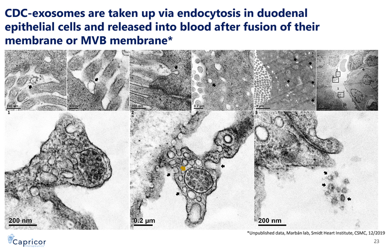 3 2 1 1 3 2 CDC - exosomes are taken up via endocytosis in duodenal epithelial cells and released into blood after fusion of their membrane or MVB membrane* *Unpublished data, Marbán lab, Smidt Heart Institute, CSMC, 12/2019 23
