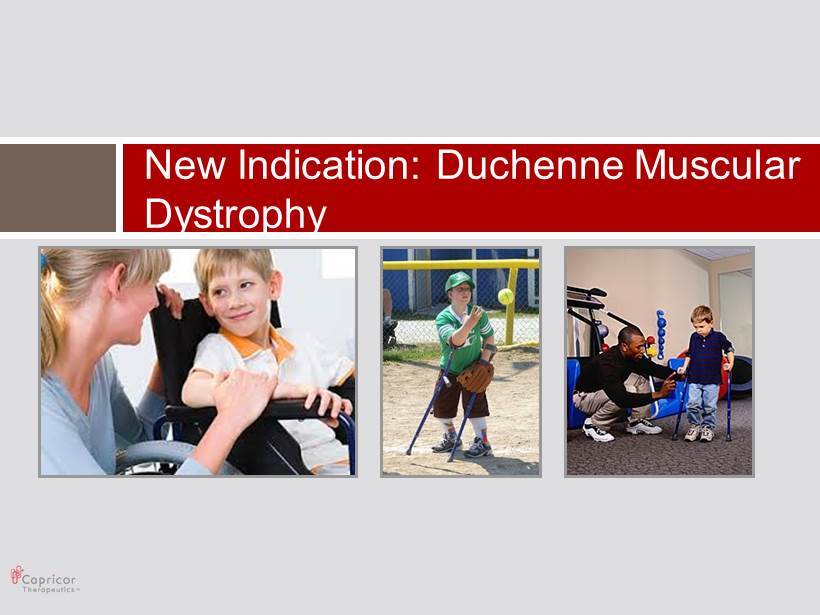 Upcoming Conference Call ▪ Tuesday – November 18, 2014 ▪ 9:30AM (EST) ▪ Hosted by Dr. Linda and Eduardo Marbán ▪ Topic: Cardiosphere - derived Cells and their Exosomes Improve Function, Restore Mitochondrial Integrity and Reverse Degenerative Changes in the Hearts of Mdx Mice ▪ Data to be presented at AHA on November 17, 2014 ▪ Call - in number: 1 - 866 - 652 - 5200 ▪ Webcast Link: http://services.choruscall.com/links/capr141112.html Reference: McNeil et. al, Muscle & Nerve, 2010 12